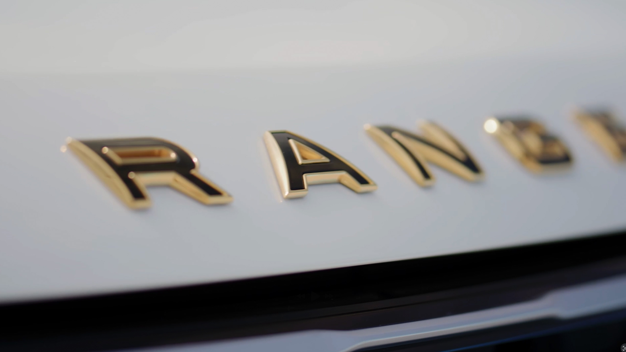 Hand‑finished Range Rover script badging made using recycled and responsibly sourced 18K gold.